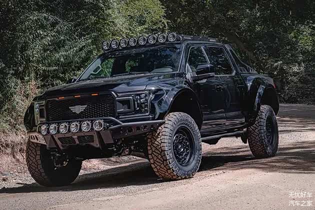 比普通版贵 36,000 美元猛禽,这款受悍马启发的 F-150 配备宽体套件、喇叭形挡泥板、前后定制钢制保险杠、高性能双侧出口 Cat-Back 排气装置、20 英寸黑犀牛阿森纳合金轮毂和 37 英寸耐特通橡胶、越野辅助照明和通过一组镁制换挡拨片控制的十速变速器。高流量性能节气门体设置,超大高流量性能冷进气口,