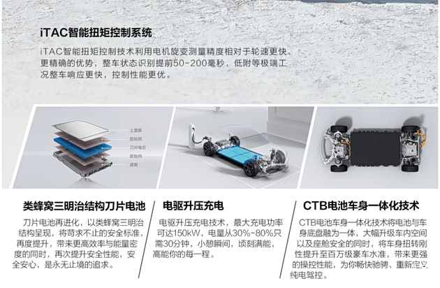 其中,CTB全称为Cell to Body,即电池车身一体化。从它以“电池车身一体化”为核心设计理念,整车扭转刚度提升了70%,操控的提升明显,同时电池作为车身的一部分参与传力和吸能,实现整车安全性能的提升。