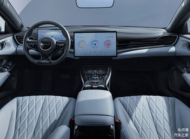 进入车内,海豹的内饰基于“海洋美学”设计理念,以舒展的线条为主基调,整体气质明显变得更为高级了,尤其是中控台部分“小蛮腰”的设计,显得颇为优雅。