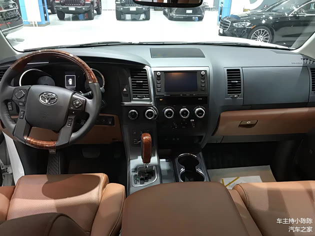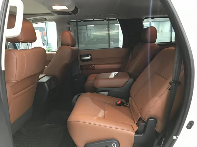 老款丰田红杉来到车内,“大”仍然在延续,但是这套内饰多少让人有些提不起兴趣,虽然做工良好,但是风格太老,用料也一般只是纯粹的实用主义。 红杉 TRD Pro只提供了7个座椅,并且是2+2+3布局,这使得每一个座椅都可以坐得非常舒适还更新了7英寸的屏幕和14扬声器的JBL音响系统。这是一辆能够让人非常从容的SUV,无论是带人还是拉货,想怎么装就怎么装,巨大的空间只能用空旷来形容,就算坐满7个人。
