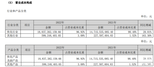 炼焦过程中释放的大量焦炉煤气中含有55%左右的氢气,为提升产品附加值,美锦能源尝试在氢能产业链上下游投资布局。早在1997年,姚俊良儿子姚锦龙便提出了利用炼制焦炭过程中产生的氢气发展新能源汽车的想法。不过,从2022年报来看,美锦能源依旧以焦化行业为主营业务,占营业成本比重超96%,而氢能源相关的营业收入不足6亿级别,占总营收比例约3%。