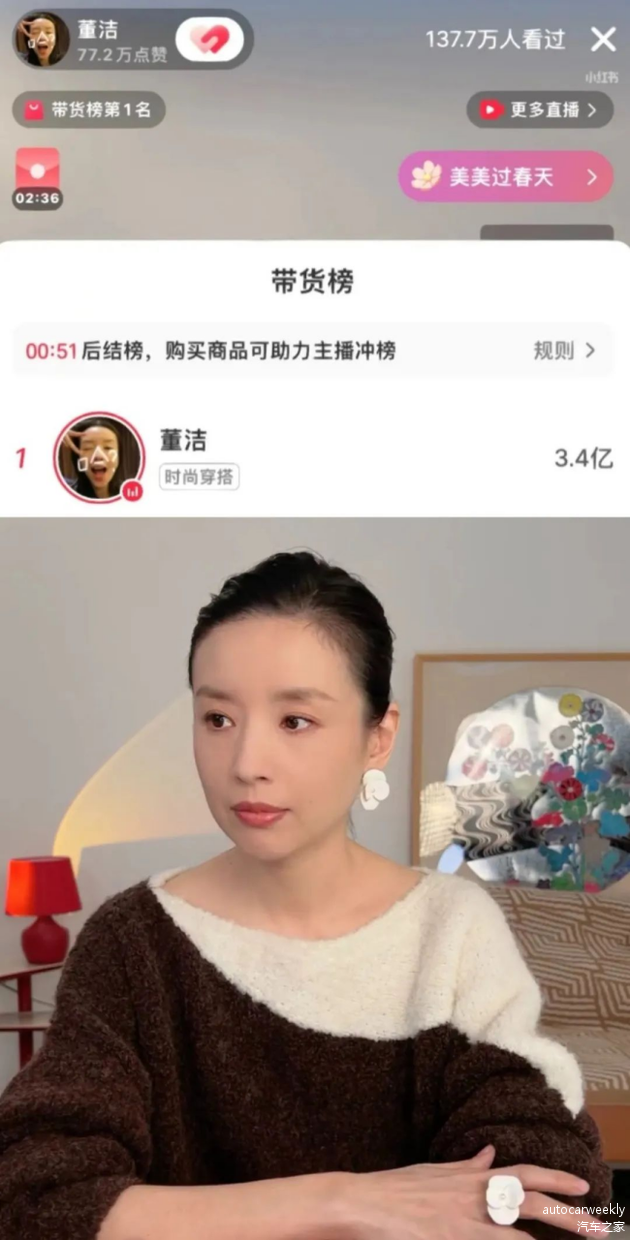沉寂10余年的董洁从今年3月开始,靠着3场直播成为小红书的“带货一姐”,涨粉100多万。成交额也是一场比一场高,从第二场的3000万到第三场的6000万元——打破了当时小红书单场直播GMV的纪录。