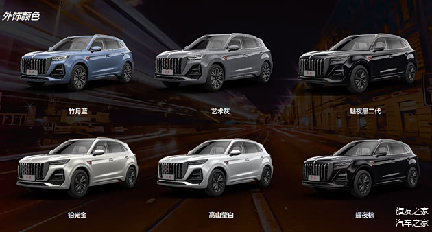 外观颜色方面,新红旗HS5提供6种颜色可以选择,分别为黑色、白色、金色、蓝色、灰色和棕色,其中竹月蓝和艺术灰是新增的外观颜色,更显年轻和富有质感,显然更对年轻旗友们的胃口。