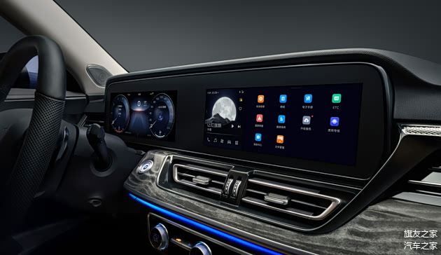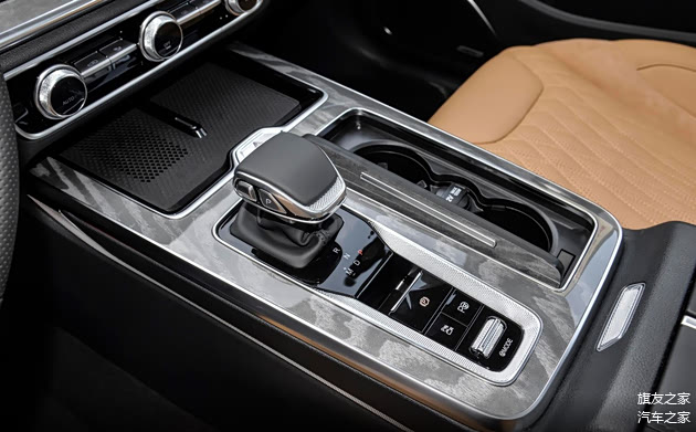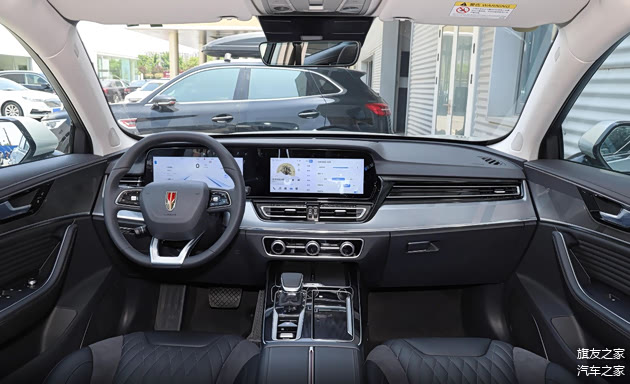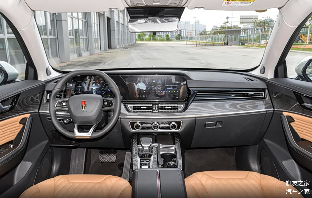 一条特殊纹理的饰板将仪表台和左右车门连成一个整体,形成新红旗HS5环抱式的座舱设计。而这条特殊的饰板也有三种不同的纹理设计,其中旗悦和旗享版车型采用激光真铝纹理,两驱旗领采用缎纹碳纤维纹理,而四驱旗领车型则采用灰色实木纹理。