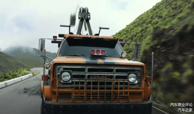 圈套可变身为一辆橙黑相间的GMC C7000皮卡拖吊车。