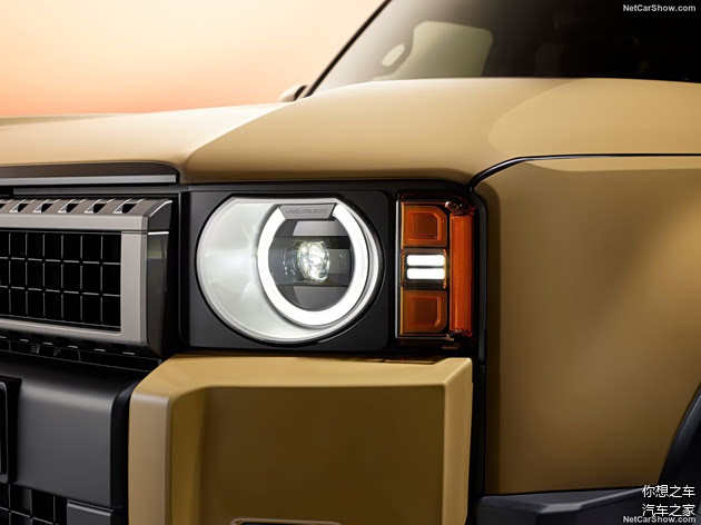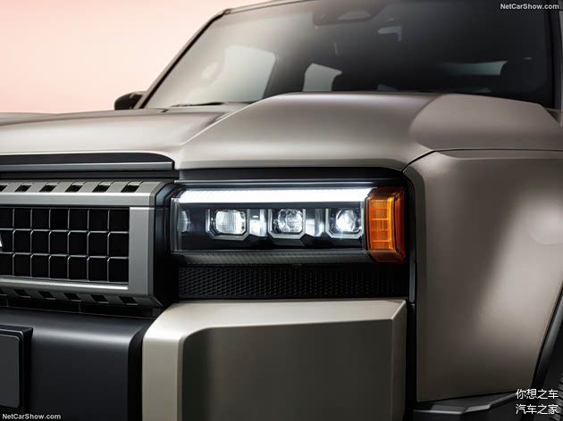 全新普拉多有两种外观样式,区别主要体现在头灯的位置。其中一款采用横向LED灯带下方搭配三颗矩阵式灯组,另外一款采用复古的圆形大灯,有些新款卫士的感觉。
