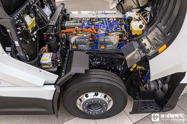 本车的燃料电池系统来自德国博世,安放在车辆驾驶室下方的发动机鼓包内部。由于本车的驾驶室模具与S-Way车型一致,因此驾驶室下方有着充足的空间安装燃料电池。细节参数方面,博世及依维柯并未公布。因此,我们还需要等待这些信息被披露出来。