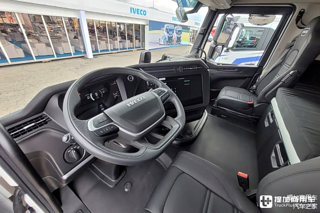 内饰方面,依维柯HD BEV同样做出了革新。虽然仪表台整体架构还和S-Way大差不差,但仪表盘等部件都采用了新的设计。这套内饰曾出现在依维柯申请的专利图片上,将作为依维柯卡车下次改款后的标配。由于这是台油改电车型,因此驾驶室内还是有发动机鼓包。