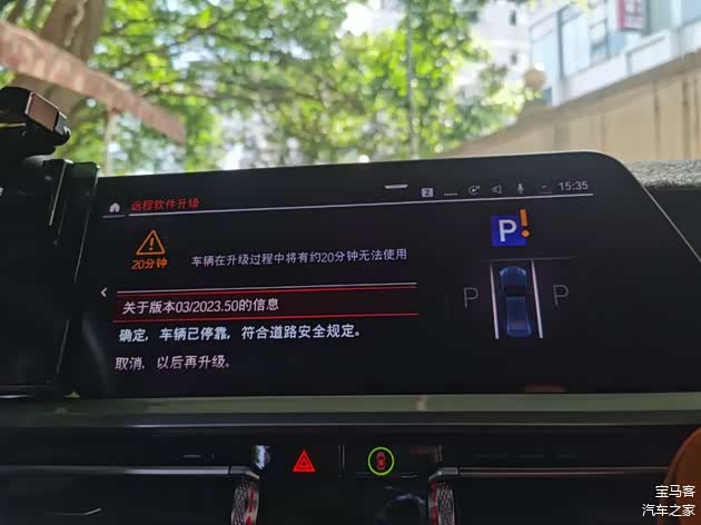 在My BMW操作确认升级后,车机屏幕会弹出提示,要求再次确认升级版本,并确认车辆已停靠处于安全状态,点击图示确定选项后,iDrive系统便关闭,进行升级安装模式,进度条读的确实有些慢,见提示可以锁车离开,就直接撤了。不过,下车后车辆好像会因为处于升级状态不会自动落锁,按了车钥匙的锁车键后视镜也没有折起,一时间也不确定到底锁上了没有,有知道的车友欢迎分享一下。