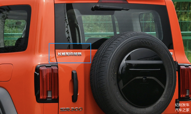 尾部方面,2024款坦克300仍然配备了外挂式备胎,后尾灯为竖状的设计,后尾门为侧开的方式。和现款车型不同的是,尾门左上方的标识从原来的“TANK”更换为“长城坦克越野”。此外,2024款坦克300将具备2000公斤的拖挂资质,并提供拖车方口、拖车取电口可选。