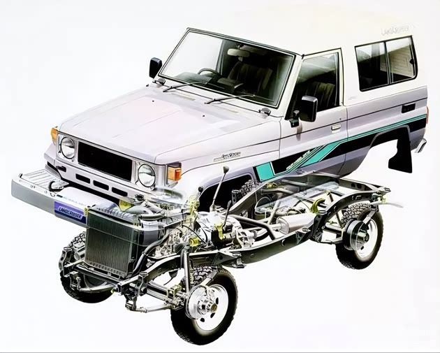 越野车的核心就是这套高强度底盘,货车和中大型客车因为载重量很大,所以也需要使用这种底盘结构。
