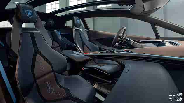 兰博基尼提到,内饰设计遵循的是“感觉像一个飞行员”设计理念,整体风格结合了宇宙飞船理念:驾驶员和副驾驶员会像在喷气式飞机上一样乘坐,T型中控台在视觉上实现了左右互联,控制组件都以符合人体工程学理念布置。
