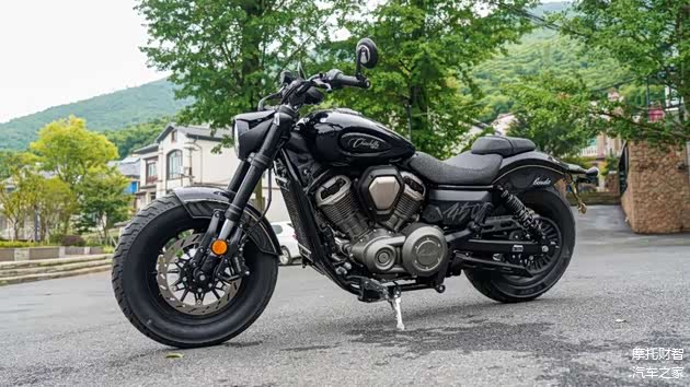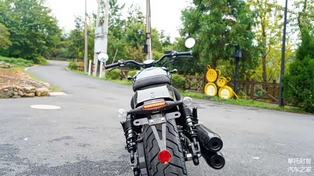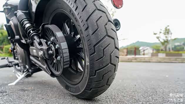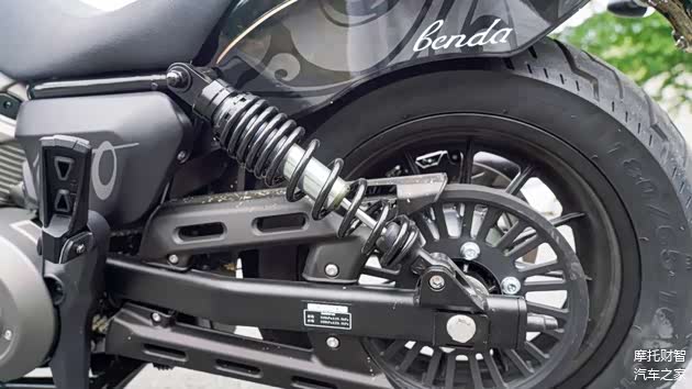 轮胎部分为了营造更强的巡航视觉效果,采用CST提供的宽胎,前150-80/16,后180-65/16的尺寸,大家可能没什么概念,这个前胎的尺寸就是黑旗500的后轮尺寸,外观是绝对到位了,与之相随的前轮的指向性以及弯道的快速倾倒受到一定的损失,但为了颜值,这也是在所难免。