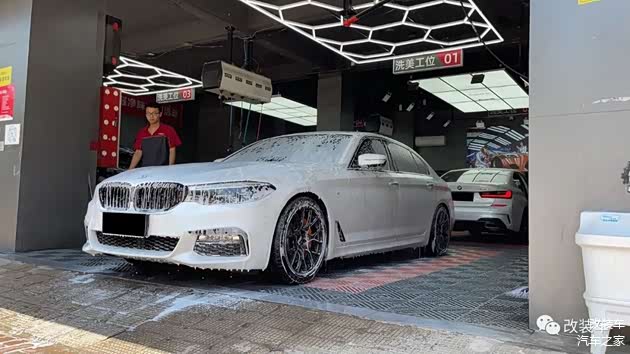 "换上了气动后,轮毂当然得重新选择一套数据和造型都合适的!经过一番考虑后,觉得5系跟BBS LM很搭,就选择了一套类似BBS LM的20寸国锻轮毂,上车后的效果我很满意,依旧觉得很帅。"