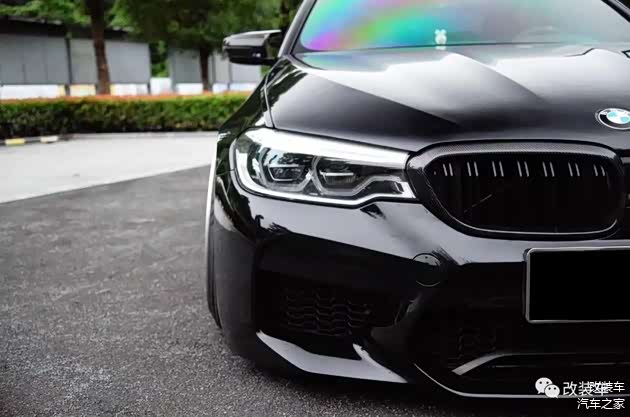 "然后是外观方面,换上了AN前杠、AN叶子板、M5机盖、碳纤维中网、碳纤维牛角后视镜壳,整体保持着一种干净、素雅的同时又有点战斗范的感觉。"