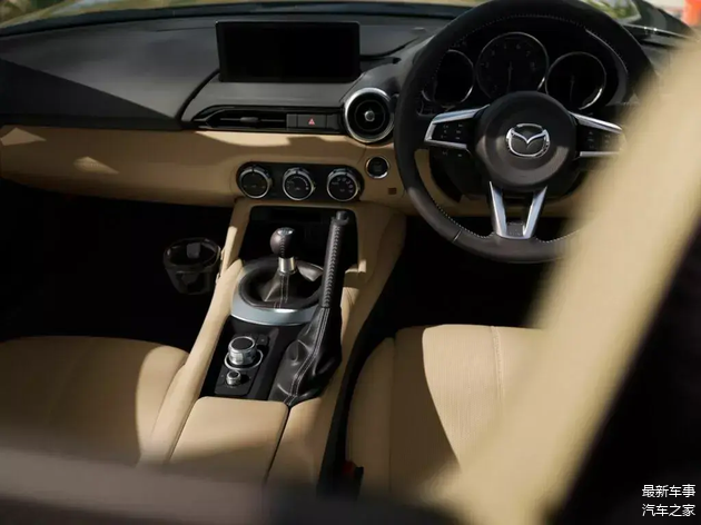 内饰方面,新款马自达MX-5配备了新的8.8英寸中控屏幕、最新的发动机系统、棕色内饰和米色车顶。此外,新的马自达MX-5改进了转向更现实的道路反馈。