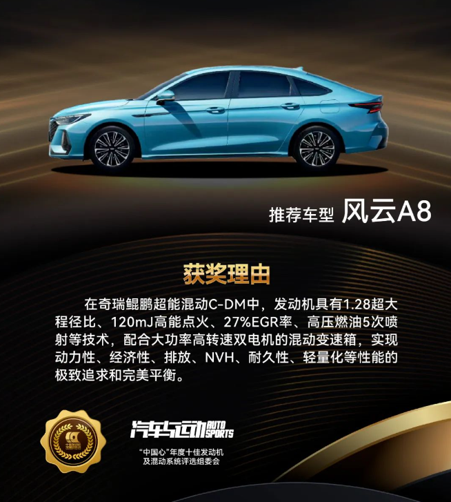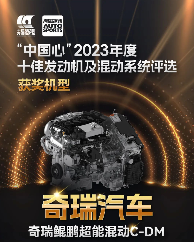 奇瑞第五代1.5TGDI深度米勒混动获得“中国心”2023年度十佳发动机及混动系统奖项。