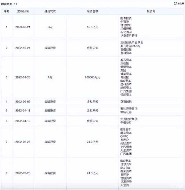 因此,二线电池厂商获得了不少车企的青睐,欣旺达动力也成为各大车企的“香饽饽”。爱企查显示,欣旺达动力成立至今,已进行了多轮融资,投资方既包括IDG资本、国寿投资、盈科资本、美团等知名投资机构,也包括蔚来资本、理想汽车、小鹏汽车、广汽集团、上汽恒旭、英菲尼迪等车企。