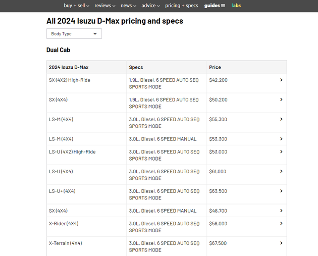 其次是皮卡大户澳洲,与国内配置基本相同的SX双排High-Ride车型售价42200澳元,折合人民币20.09万,同样的1.9T,变速箱是爱信的6AT。D-MAX车型近期在澳洲销量增长十分迅速,月销量在3000台左右,实现了近50%的上涨,作为澳式风格中型皮卡的代表车型,D-MAX深受澳洲用户追捧,与丰田海拉克斯、福特Ranger、三菱L200齐名。