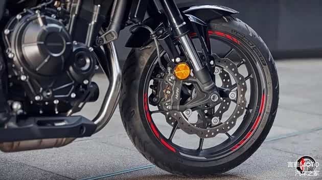 减震系统与CB750 Hornet保持一致,采用SHOWA昭和41mm SFF-BP倒置前叉,搭配多连杆结构预载可调中置后减震。刹车系统采用298mm双盘NISSIN四活塞卡钳,后240mm单盘单活塞卡钳,安全配置得到了ABS和可关闭的HSTC牵引力控制系统加持。