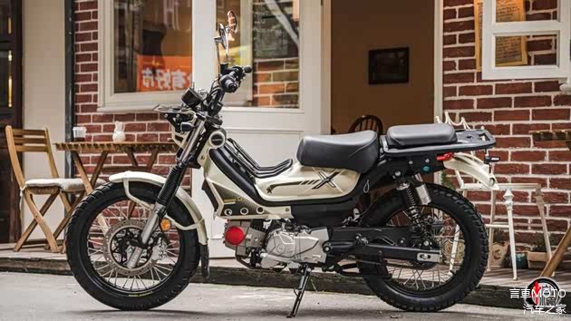 ◆ 底盘硬件 车身框架采用整体焊接工艺的环抱式弯梁车架,独特的车身结构也使其具备了更多可玩性,前中后三处置物架的配备极大程度上提升了车辆的载物能力。整备质量106kg,座椅高度780mm,油箱容量9升,配合2L左右的油耗,综合续航轻松400km+。