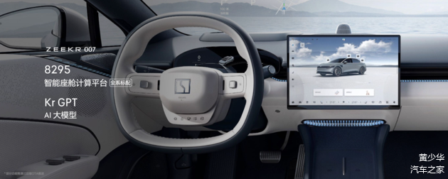 在智舱方面,极氪007也全系标配目前最顶级的8295智能座舱计算平台,并首次应用AI大模型技术;智驾方面,也首发应用极氪全栈自研的高阶智驾方案,并标配Orin X高算力芯片等。