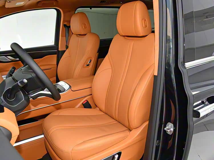其中行政加长版采用2+2+2六座布局,第二排和第三排均采用独立座椅,并带有腿托。全车座椅均支持电动调节、加热、通风功能,前两排座椅还支持座椅按摩功能。此外,该车在后排顶棚采用了830个星点、680个满天星,拥有5颗动态“流星”,呈现出星空顶的效果。