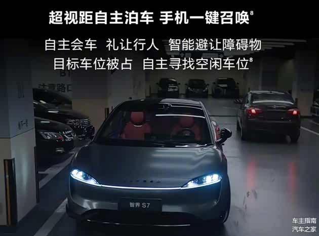 根据官方的介绍,智界S7不仅可以在车主指定的车位停车,还能自己找车位停,当发现目标车位被占时,系统会在手机实时提醒车主,然后汽车自己漫游去找其他空旷的位置停车,停车完成以后车主的手机也能收到提示,可实时查看车辆的具体情况。