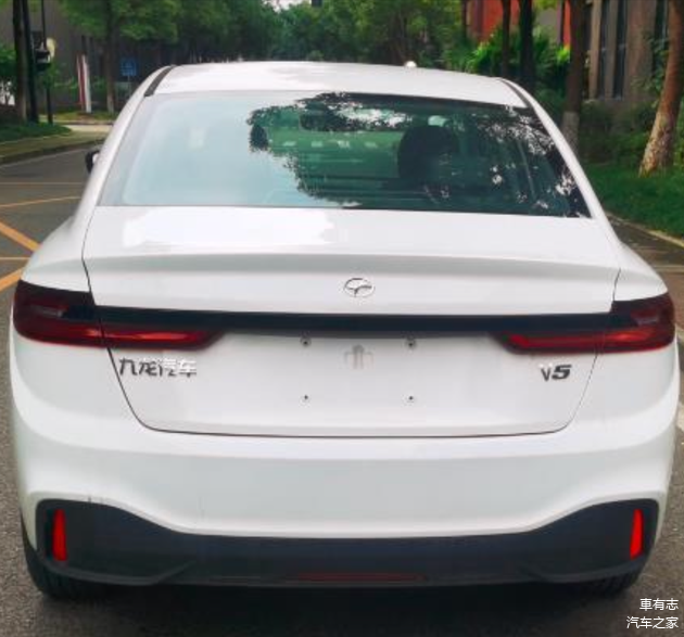 九龙V5的尾部造型与帝豪GL有一定区别,尤其是尾灯组部分,整体更加细长,呈现出横置L型样式,并通过黑化的装饰条贯穿连接,搭配小鸭尾的造型设计以及底部大面积的黑化装饰件包覆,进一步凸显尾部的视觉运动感。“九龙汽车”和“V5”的标识则表明了这台车的身份信息。