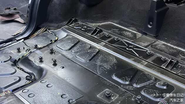 底板全面清洁干净,路虎的线束真的很恐怖,布置的密密麻麻。