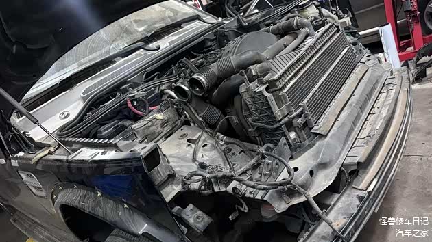 目前咱们检查下来发动机存在漏油的情况,所以先对前脸进行了拆除,都说路虎修起来工时贵,这是为啥呢?其实一拆就知道了,它的做工、用料和机械的复杂程度确实比常规的一些车型麻烦很多。