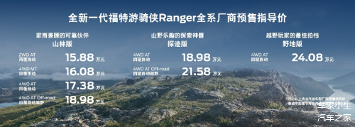 福特游骑侠Ranger目前在国内一共拥有16款车型,其中福特游骑侠Ranger 1st Edition首发版已经正式上市,用户基本可以把它忽略,原因很简单,限量800台,成都车展预售3小时全部售罄,真正的手慢则无。因此,未来用户能买的是目前还在预售阶段的山林版、探迹版和野地版三大系列14款车型,汽油版预售价15.88万元-24.08万元,柴油版基于对应汽油版加4,000元。这个价格可以说比海外版便宜很多!以澳洲市场为例,入门版价格就要48860澳元(约22万多人民币)。国产版车型整体价格区间是目前皮卡市场主销价格段,说白了就是这个价格区间内的皮卡,用户买的最多。福特把自己第一款国产皮卡放在竞争如此激烈的价格段,间接说明了其对福特游骑侠Ranger产品力和未来销量的自信。另外现在福特游骑侠Ranger还仅仅是预售价,按照常规,正式售价会低于预售价,这就意味着它的正式售价会更加的亲民。