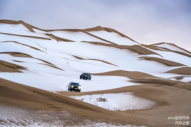 冬季并不是一个适宜挑战的时节。在高原沙漠,呼吸都是一种负担。更大的难度在于此时的沙漠被冰雪覆盖,低温冻水成冰,覆盖在沙漠表层,无比坚硬。但风吹过后,又为冰沙混合层上重新铺上了细沙地形附着力极差,车辆轮胎极易打滑,行车穿越难度极大且危险性极高。