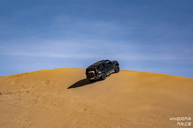 快走沙,慢走水,抓得住,走得动,这是沙漠越野的必修课。正因为沙子的流动性,抓地力的获得至关重要。猛士917采用了创新开发的中央虚拟差速锁,实现越野全时四驱控制,可智能估算最佳抓地力,实时修正前后轴运动步调;性能强悍的IBC线控液压制动提供高效高性能的电子限滑;增强的R-EPS转向设计确保猛士917在100%坡度下坡场景下,依然能够获得有足够的转向助力表现;150mm行程的空气悬架调节有效提升车辆的通过性,CDC连续阻尼可调的减振器快速收敛颠簸路面下车身过多的运动,让猛士917在沙漠攀爬中始终找到自己稳字当头的节奏。