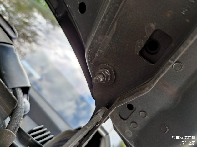 水箱框架一周的螺丝也都没有拧动痕迹,前面车头发生事故碰撞的可能性几乎没有!