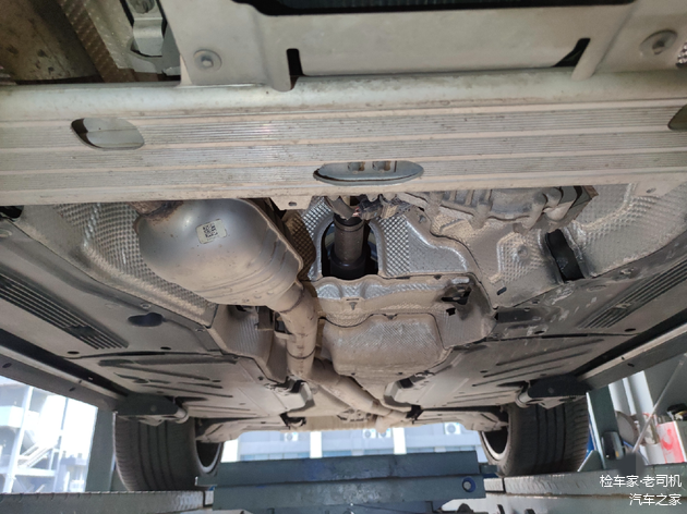 最后来到修理厂检测底盘,底盘整体看起来干爽平整,没有明显的托底刮蹭痕迹!