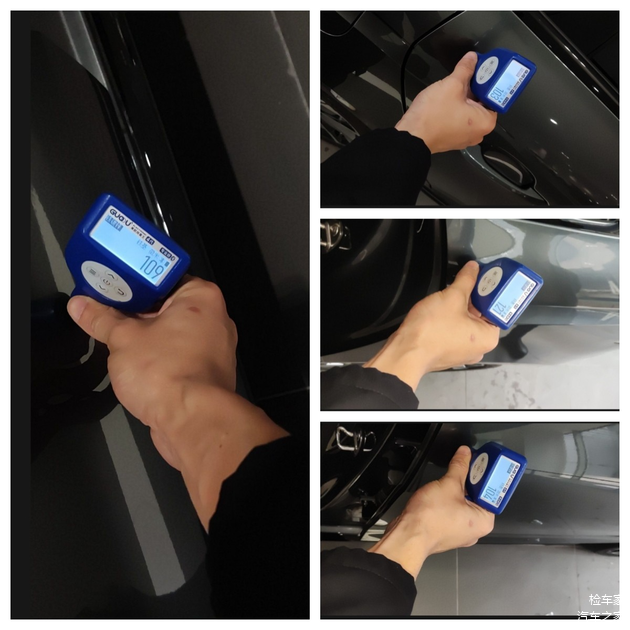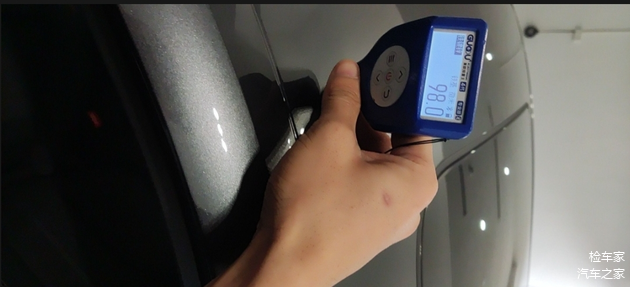 老样子取车顶漆作为参考数值,如上图所示漆膜仪显示98μm,说明该车漆面厚度在100左右即为正常。