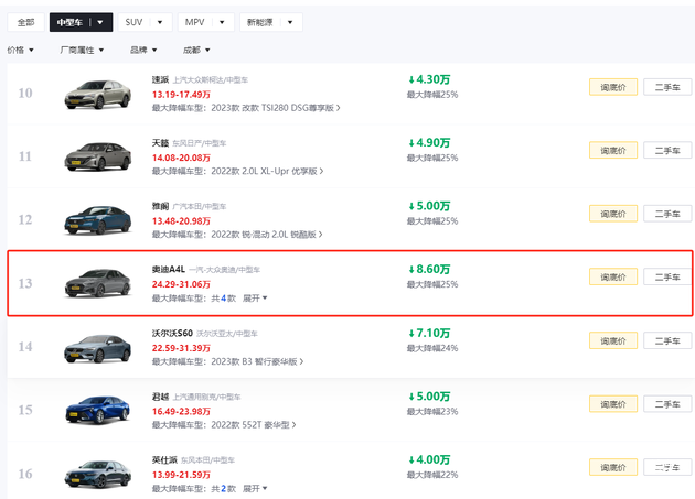 一路上我就在想:二手车比新车低好几万不是很正常吗,再说现在奥迪A4的行情不就是新车直降10万了吗?不管了,先到了现场之后再看看到底是怎么个事儿!
