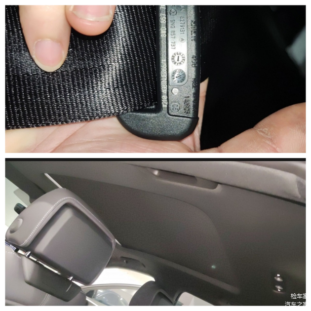 左右两边安全带符合原厂日期,无拆卸痕迹,可以排除事故引起的拆卸和更换嫌疑,顶棚和顶棚拉手也没有拆卸和脏污。