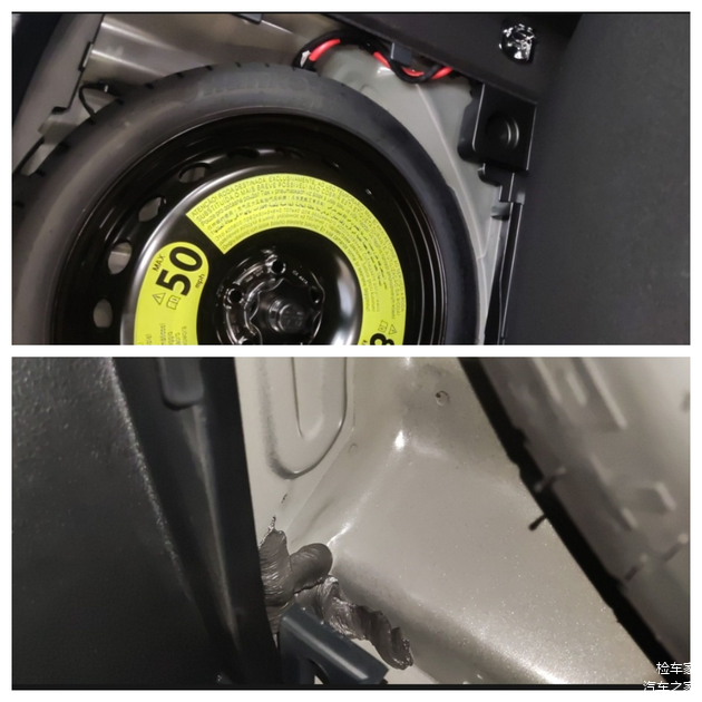 接着就是看后围板和后备箱底板了,如上图所示,没有钣金切割和焊接变形痕迹的,可以排除后部有追尾的痕迹。