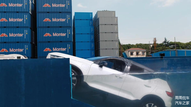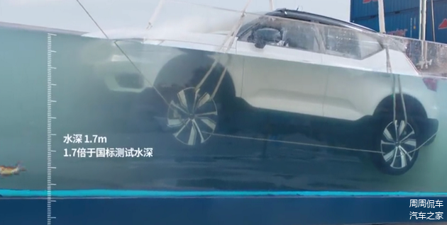 XC40纯电动版直接整了个大的,将整车完全浸泡于1.7m深的水中长达12小时。