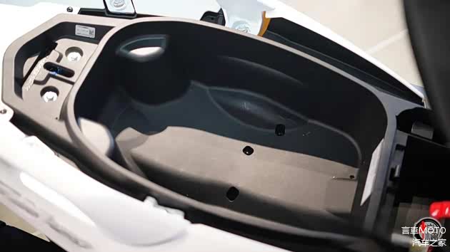 ◆ 底盘硬件 车架部分采用运动踏板常见的龙骨框架结构,相比平踏在实用性上表现差了些,但整车的运动气质更为突出,各有利弊吧。储物方面提供了前手套箱+可容纳一顶头盔的座桶空间,整备质量150kg,座椅高度755mm,油箱容量13L。