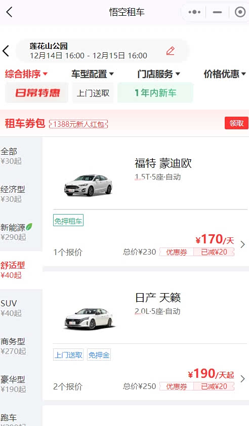 以这个平台租车价格为例,即可清楚在龙岩租车自驾需要花费多少!