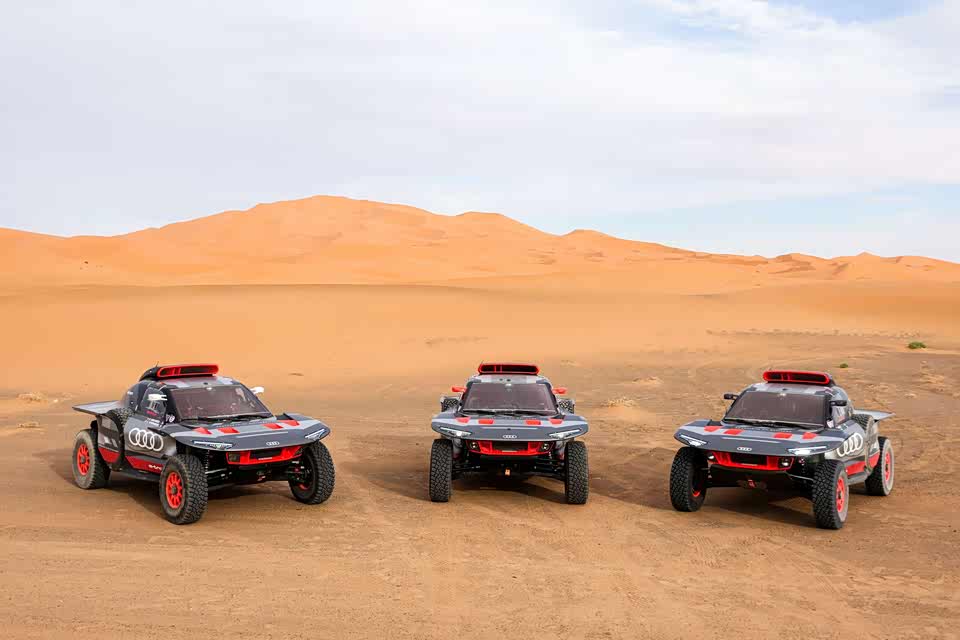 即将开幕的第46届达喀尔拉力赛共有343辆赛车参赛。T1和T2组别将有72辆赛车参与角逐,T3组别则有42辆赛车,此外还有36辆小型SSV赛车、46辆卡车、137辆双轮摩托车和10辆四轮摩托车参赛。奥迪RS Q e-tron即将第三次角逐达喀尔拉力赛,奥迪RS Q e-tron搭载的电动驱动系统配备了高压电池,并且可以从能量转换器获取动力。根据比赛规定,2024年1月起,前后轴之间分配的电机最大输出功率为286千瓦,还有其它细节优化缩短了车队的保养时间。