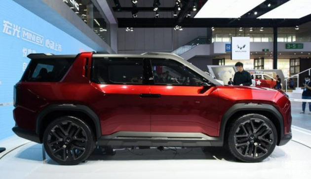 车身侧面,宏光侠的辨识度更高。双色设计的车顶与车身形成鲜明对比,时尚感十足。C柱采用三角形设计,与涂黑的ABD柱形成反衬效果,营造出一种炫酷的机甲风。突出的轮眉和超大的轮毂进一步彰显了车辆的力量感,而别致的轮圈造型则让人产生一种轮胎是不规则形状的视觉错觉,增加了车辆的炫酷感。