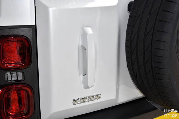 哈弗猛龙的尾部看起来颇有点路虎卫士的范儿,呵呵,车顶末端设计了高位刹车灯,竖向布局的矩形尾灯点亮后有种深邃感,采用了侧开式尾门,提供外挂式备胎,可选装外挂“小书包”的版本,前者车身长度为4800mm,后者车身长度为4680mm,车身宽度和高度都是1916mm和1822mm,轴距都是2738mm。