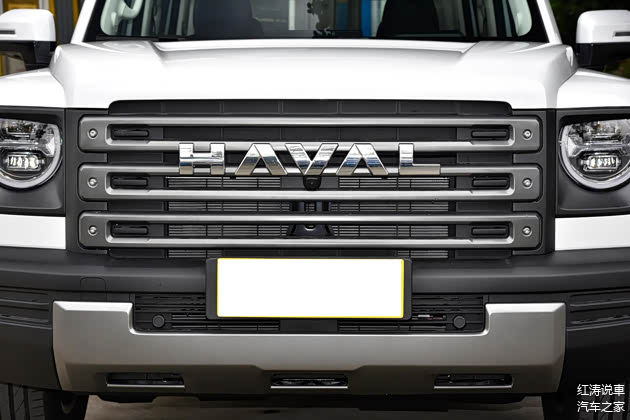 外观方面,哈弗猛龙的车头方正厚重,融入了硬派越野风格的设计元素,前脸采用大尺寸四边形格栅,三根双条样式的装饰使用了外露铆钉加以点缀,硕大的哈弗英文标识十分醒目,前包围应用了金属护板。