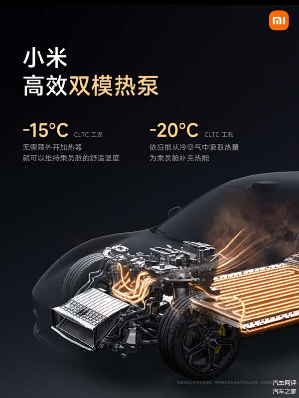 小米下午举行了汽车技术发布会,宣称要"挑战冬季电车之王"。据介绍,小米汽车首创了高效双模热泵技术,在-15℃ CLTC工况下,无需额外开启加热器即可维持乘员舱的舒适温度。