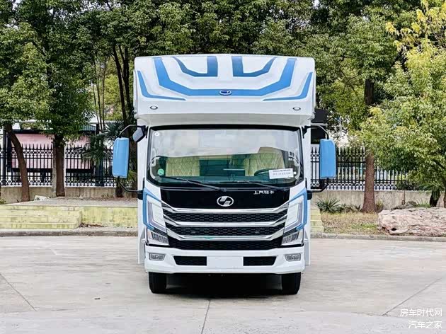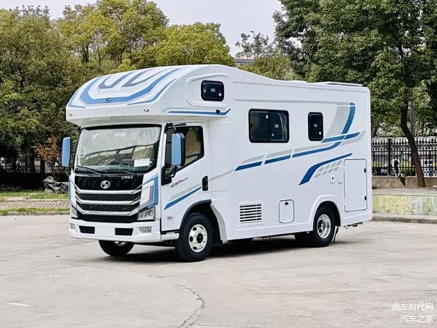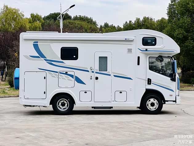 家具采用了欧式蓝和米白色为主色调,带来雅致清新氛围。再加上顶部的暖色灯光为内部空间增添更多的明亮和温馨感。内饰采用经典C型房车布局,前方为驾驶室、额头床,中部为会客区、厨房区,尾部为休息区、卫生间。
