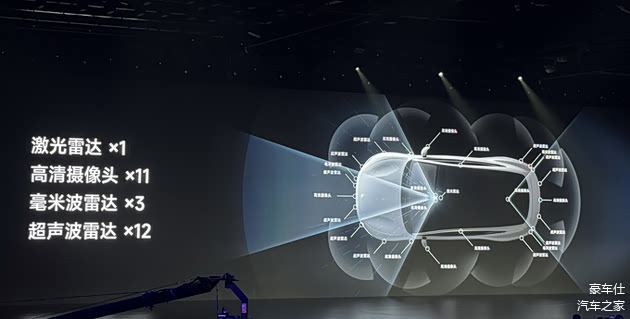 在硬件方面,该系统配备了顶级的配置,包括两颗英伟达Orin高算力芯片,综合算力高达508TOPS。感知硬件则包含1颗激光雷达、11颗高清摄像头、3颗毫米波雷达和12颗超声波雷达(Max版车型)。